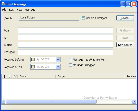 ![]() In the 'find message' dialog box, you can see that there are fields to search in virtually any part of a message. Simply fill the appropriate field and click the 'find now' button.