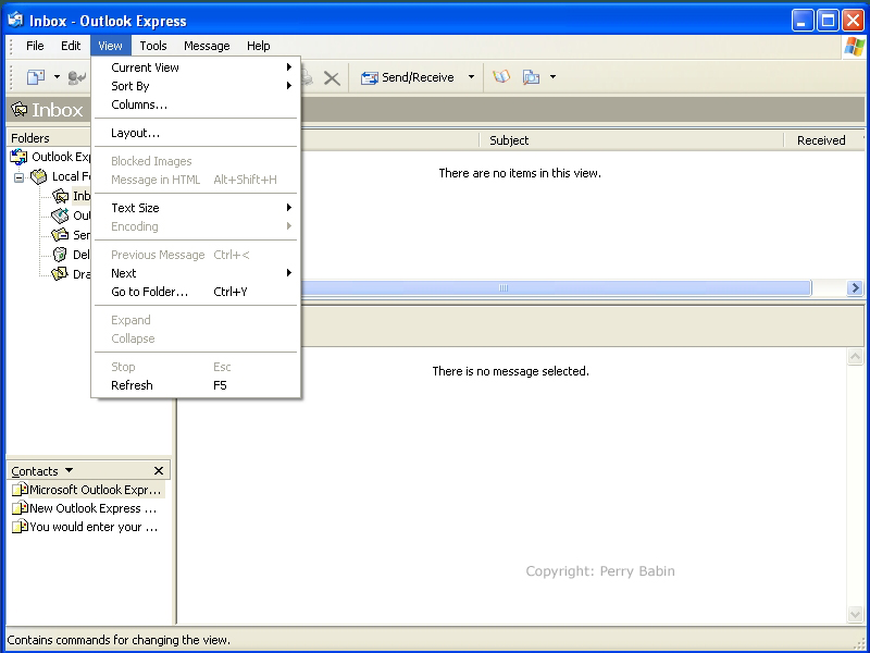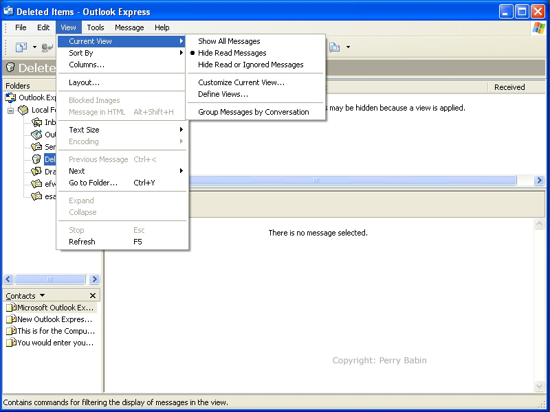 ![]() In the 'current view' menu, you can see that you can choose whether you want to see all of the messages or just the unread messages. Earlier, we discussed the ability to mark a message as read or unread. If you generally have Outlook Express set to only show the unread messages and you want the message you're currently reading to show up in the message list, you can mark is as unread (before you go to another message) and it will continue to be visible in the message list.